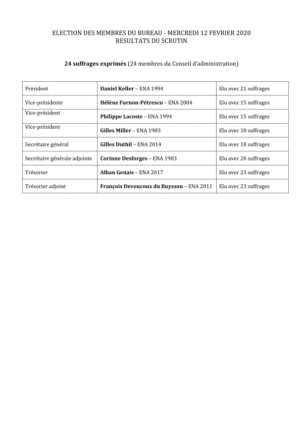 Election des membres du Bureau - Résultats du scrutin