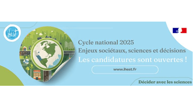 L'Institut des Hautes Études par les Sciences et la Technologie (IHEST) lance son appel à candidature pour le Cycle national 2025, une formation dédiée aux décideurs de haut niveau issus d’horizons divers (administrations centrales et déconcentrées de l'Etat, entreprises, parlementaires, élus territoriaux, universités, organismes de recherche et agences, corps constitués de la société civile).