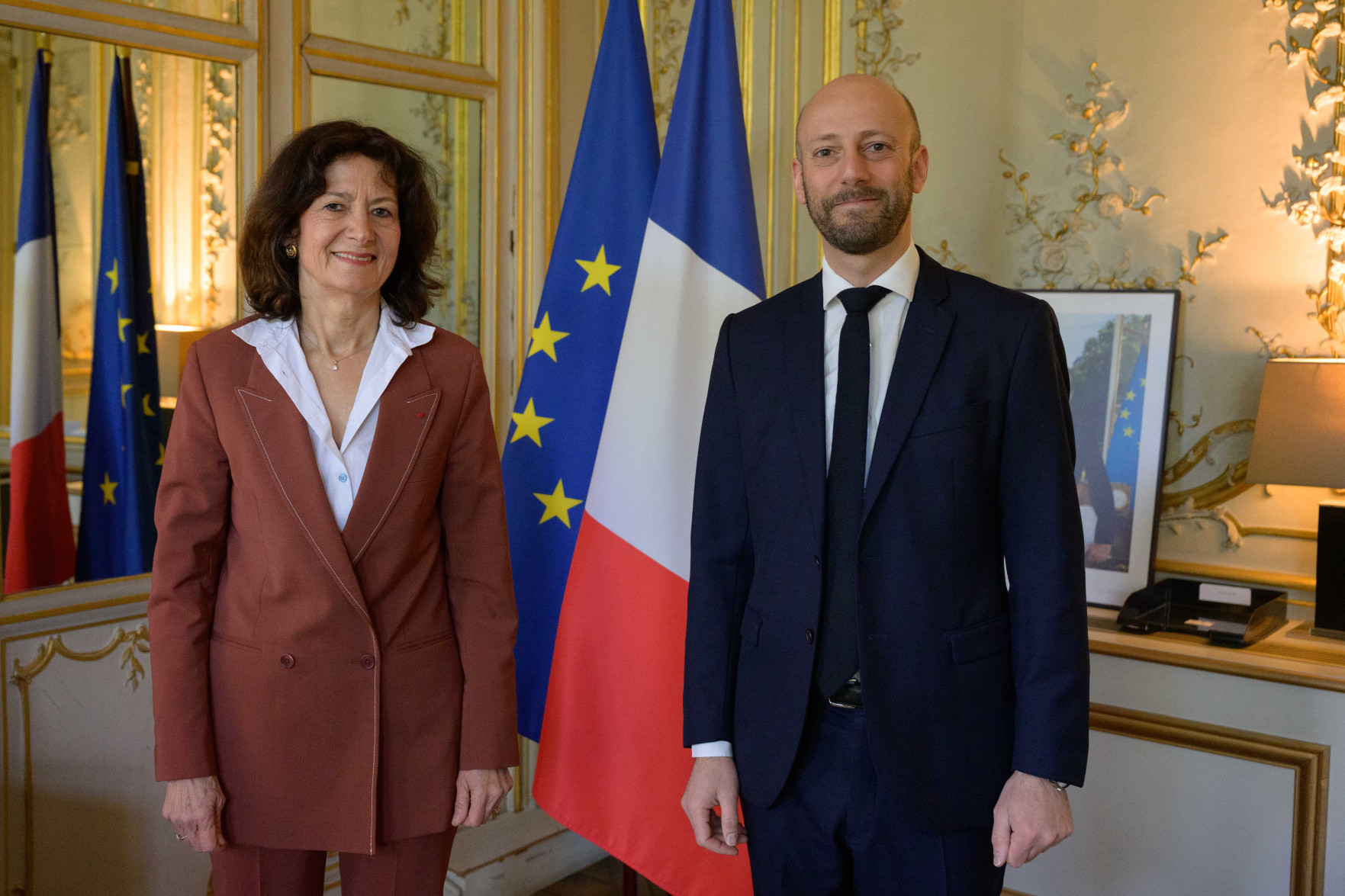 Rencontre entre notre présidente, Isabelle Saurat, et le ministre de la Transformation et de la Fonction publiques, Stanislas Guerini,
