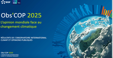 Dans un contexte marqué par l’intensification des évènements climatiques, mais aussi par des incertitudes économiques et géopolitiques, comment évolue l’opinion et les opinions face au changement climatique ? C’est ce que nous révèle l’étude réalisée depuis 7 ans par l’IPSOS à l’initiative d’EDF, une enquête dans 30 pays, sur les cinq continents, pour appréhender l’état des opinions, connaissances, attentes et niveaux d’engagement face au changement climatique.