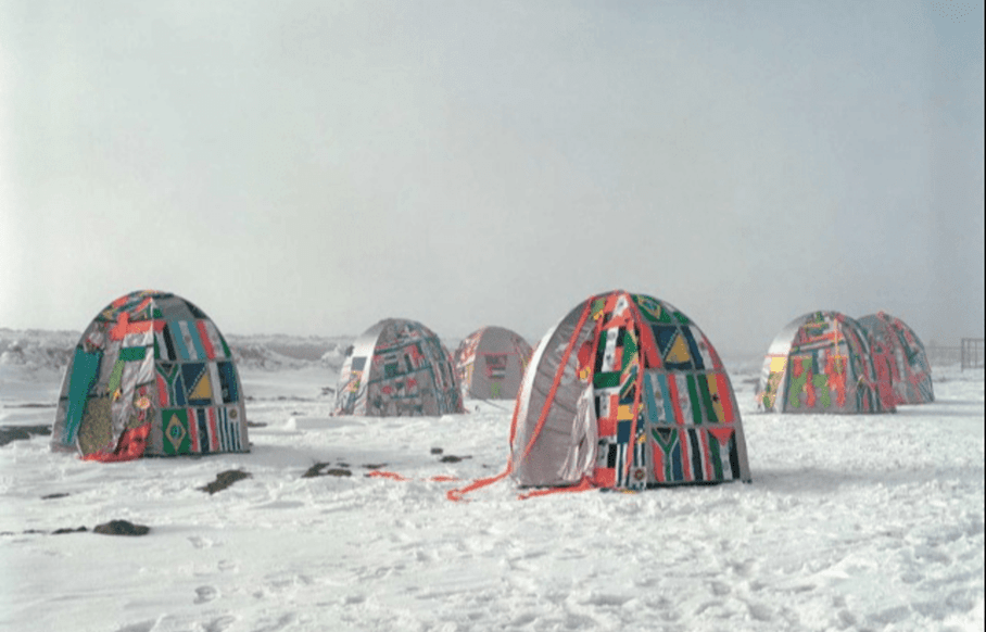 Photo : Lucy + Jorge Orta, « Antarctic Village - No Borders », 2007-2021. Courtesy Lucy + Jorge Orta. Musée national de l’histoire de l’immigration, Paris © Photo de Thierry Bal © ADAGP, Paris, 2025.