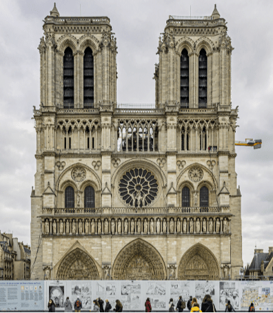 Suite à l’incendie de 2019, la cathédrale Notre-Dame-de-Paris, monument emblématique de Paris construit à partir de 1163 et restauré par Viollet-le-Duc au milieu du XIXe siècle, a connu une restauration complète jusqu’à sa réouverture en décembre 2024.