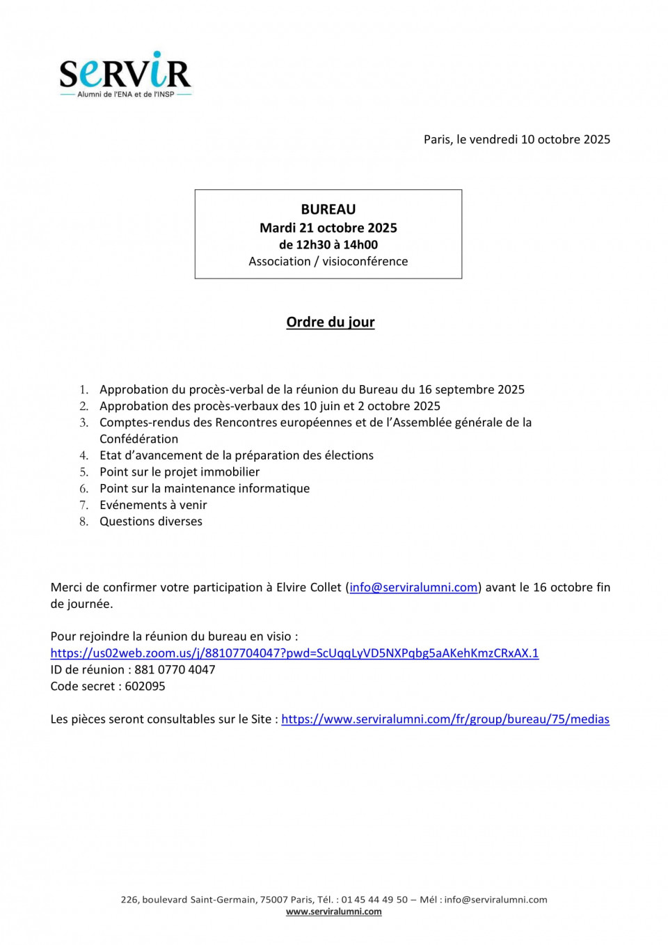 Réunion de Bureau du 21 octobre 2025