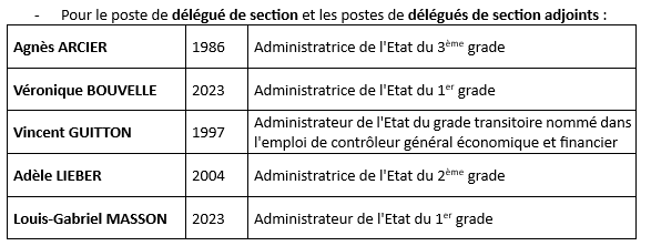 - Pour la constitution de la liste de la section, il n’y a pas de restriction dans les textes de l'Association : il est même recommandé que le délégué de section s’entoure de plusieurs délégués adjoints, pour conduire un travail d’équipe solide et diversifié. Nous proposons que soit nommé délégué de section, sous réserve de son accord, le candidat qui aura le plus grand nombre de votes.